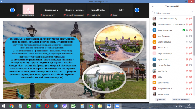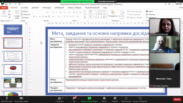 Свою роботу онлайн-конференція розпочала з привітального слова завідувачки кафедри готельно-ресторанної справи та туризму Інни Левицької, яка побажала усім учасникам успішно апробувати результати виконаних досліджень і якомога краще підготуватися до захисту кваліфікаційних робіт.