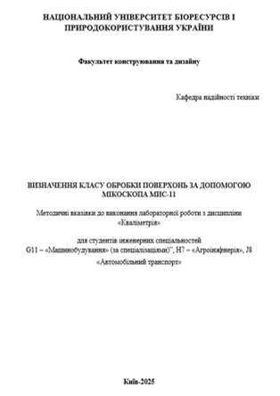 Розроблені методичні вказівки містять стислий опис методики визначення чистоти обробки поверхонь деталей, правила оформлення звіту та послідовність виконання завдання. Матеріали лабораторної роботи сприяють глибшому засвоєнню теоретичного матеріалу та формуванню практичних навичок користування оптичними засобами вимірювання.