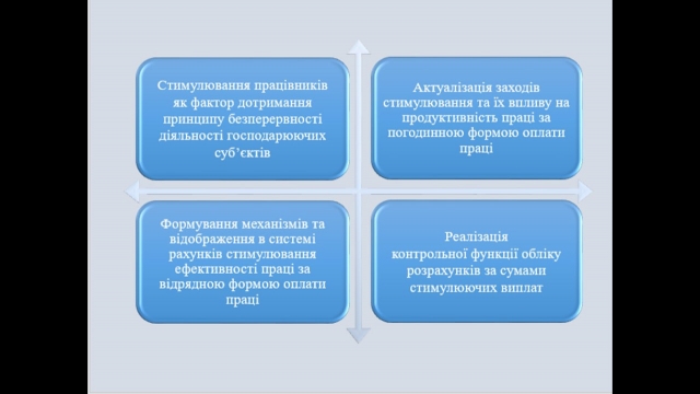 Метою дослідження було обґрунтування теоретичних положеннь щодо ролі облікових функцій в управлінні підприємством, зокрема інформаційної, контрольної, оцінювальної, аналітичної та прогностичної, а також сформувати механізм стимулюючих виплат за погодинною та відрядною формою оплати праці в умовах ризиків, з якими зустрілися більшість підприємств внаслідок запровадження карантинних обмежень.