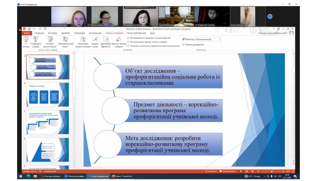 Випускники ОПП «Соціальна робота» та ОПП «Соціально-психологічна реабілітація» презентували результати виконання магістерських робіт. Незважаючи на хвилювання, доповіді здобувачів були змістовними та логічно побудованими, відповіді на запитання – вичерпними.