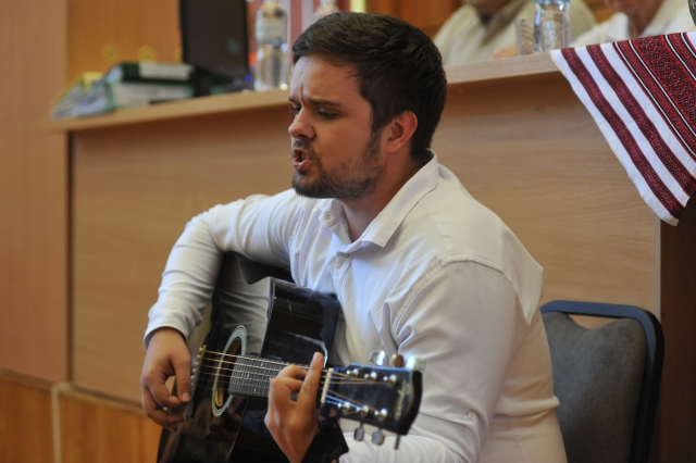 Випускник-транспортник Криськов Владислав розчулив присутніх душевним виконанням пісні «Там де Дніпро широке», виконаної під гітару.