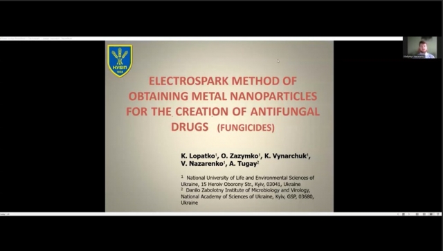 Володимир Анатолійович зробив доповідь англійською мовою за результатами спільної роботи з професором кафедри технології конструкційних матеріалів та матеріалознавства, доктором технічних наук Костянтином Георгійовичем ЛОПАТЬКО на тему: «Electrospark method of obtaining metal nanoparticles for the creation of antifungal drugs». Доповідь відбулася у перший день проведення конференції та викликала жвавий інтерес у присутніх.