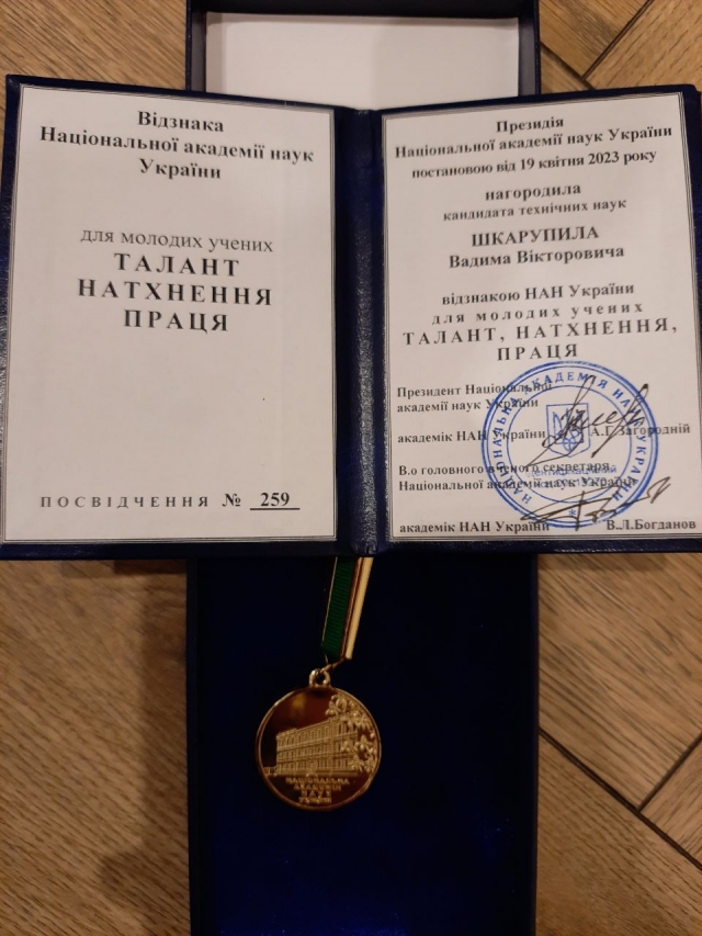 Нагороджено відзнакою Національної академії наук України "Талант, натхнення, праця" доцента кафедри Шкарупила Вадима Вікторовича