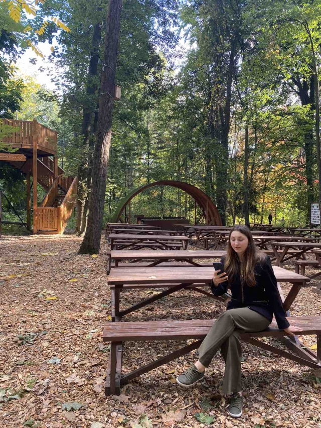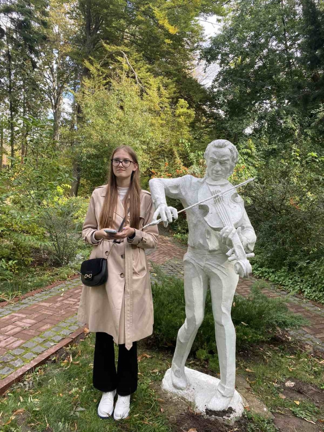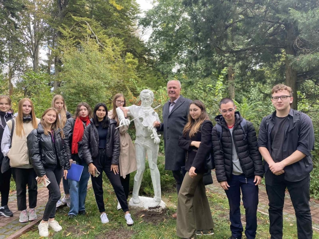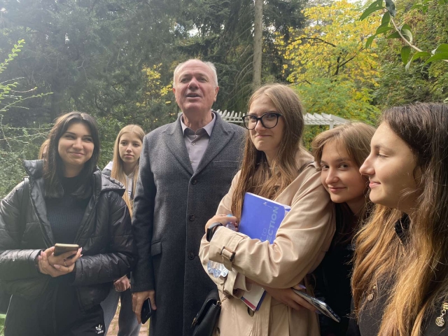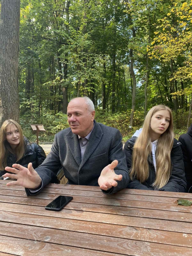 Спонукало до дійства й те, що зовсім неподалік від нашого освітнього храму – НУБІПу – стоїть сьогодні одиноко (через війну) садиба незабутнього Максима Рильського. Про неї багато розповідав наш куратор (ми безмежно дякуємо йому за хвилини панування на заняттях шедеврів красного письменства). Причарувало всіх, як оригінально вималював золоту пору року Максим Тадейович, як голосіївська осінь у його художньому просторі яскравіє різними барвами, вабить душу й серце, зачаровує та захоплює всякого, хто дотикається до поетичних струн неперевершеного зодчого слова. Тож вирішили твердо, що одну з виховних годин присвятимо голосіївській осені. Вона зараз уповні, а наш прекрасний Ботанічний сад віддзеркалює промовисто всі її принади.