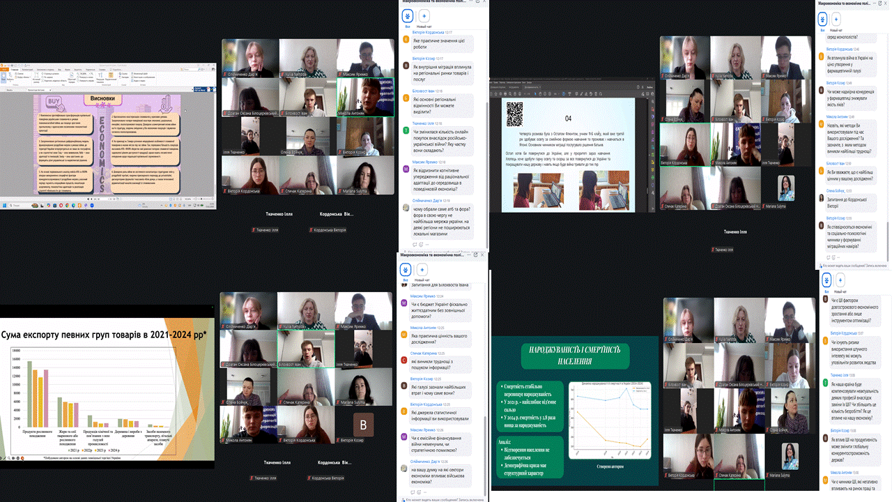 Окрема увага приділялася соціально-економічним аспектам розвитку держави, зокрема демографічним тенденціям, міграційним намірам молоді, проблематиці тіньової економіки та її впливу на макроекономічні показники. Також учні аналізували особливості функціонування окремих ринків, механізми ціноутворення, рівень конкуренції та регуляторні впливи, а також перспективи впровадження інноваційних технологій, зокрема штучного інтелекту, у контексті ринку праці та продуктивності економіки.
