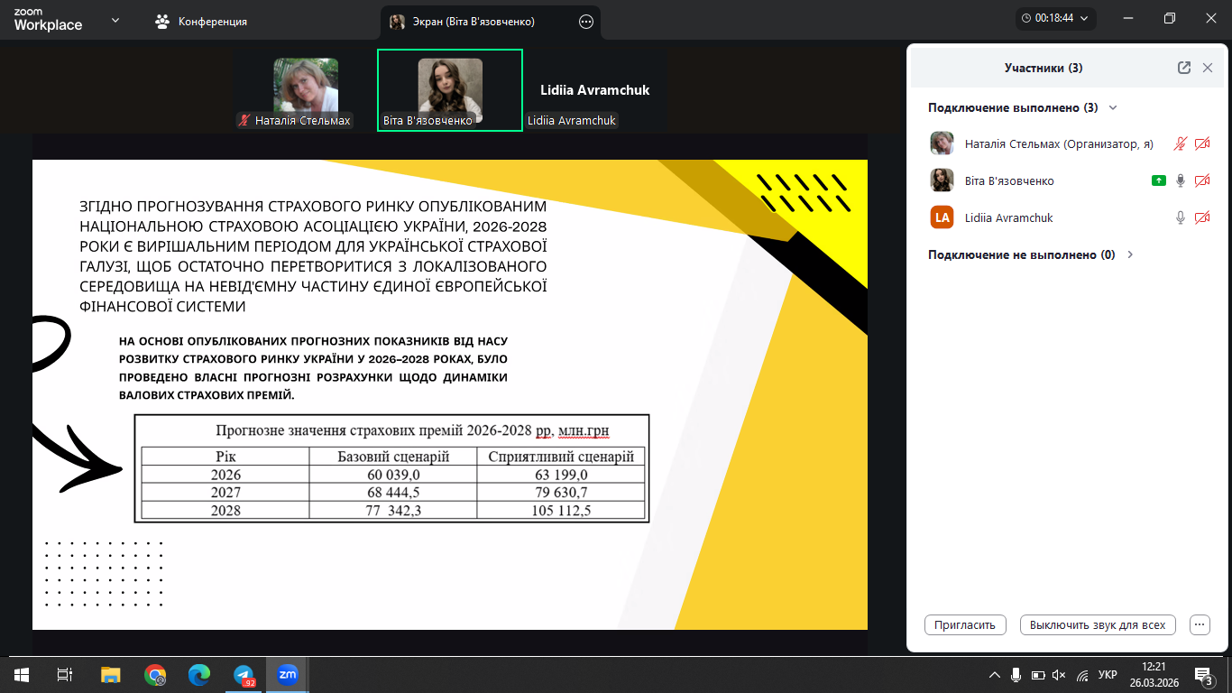 У межах напряму «Страхування» були представлені дослідження, що висвітлюють трансформацію страхового ринку України в умовах воєнного часу та зростання ризиків.