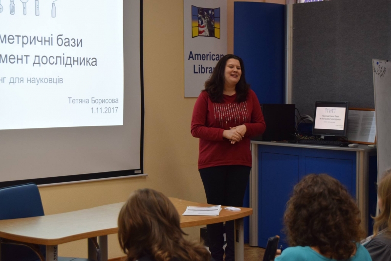Проводила тренінг Тетяна Борисова, завідувач відділу електронних ресурсів Наукової бібліотеки НаУКМА.