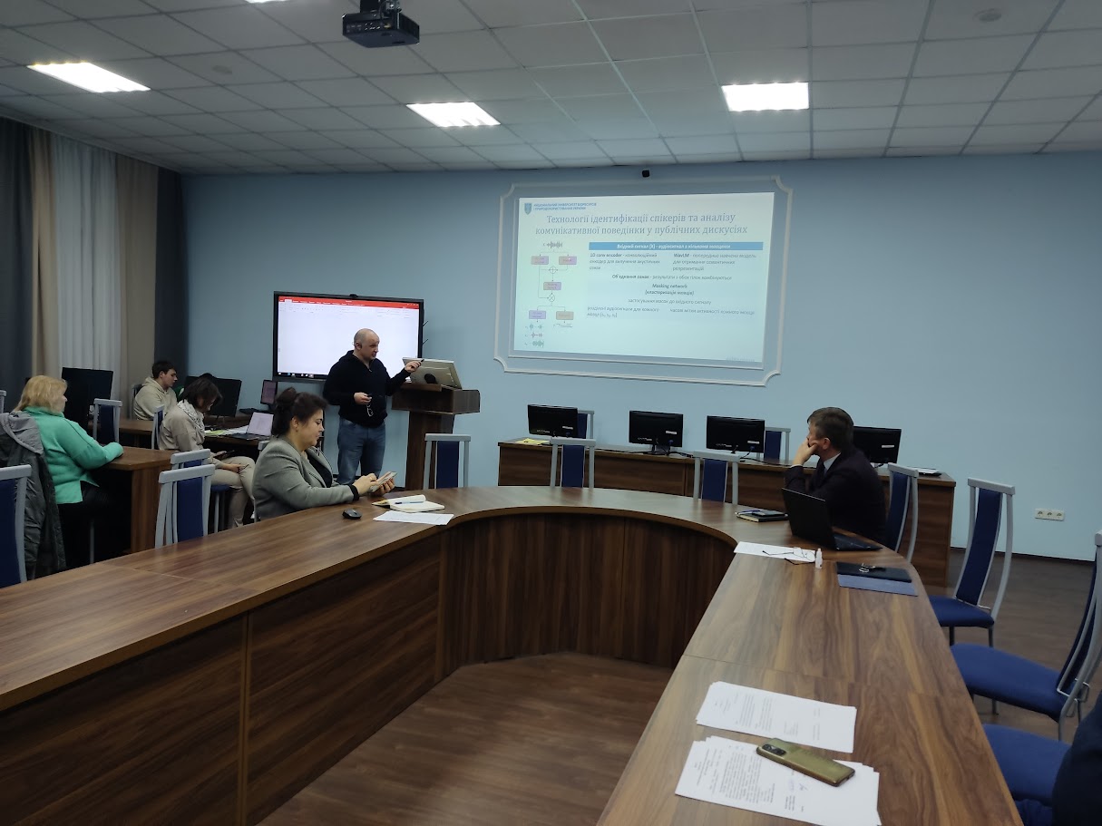 На засіданні вченої ради факультету інформаційних технологій професор кафедри комп'ютерних наук Руденський Р.А. представив наукову доповідь на тему "ШІ для аналізу публічних дискусій" за результатами прикладного дослідження "Використання технологій штучного інтелекту в публічному управлінні, зокрема в умовах воєнного стану".
