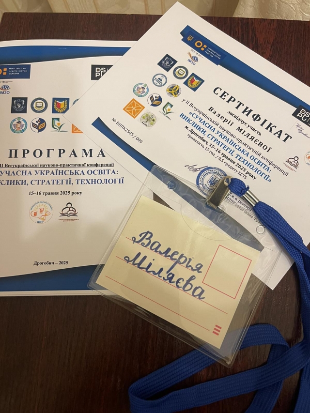 Зазираючи в прийдешнє завершення навчального 2024/2025 року, акцентуємо увагу на презентації здобутків кафедри психології гуманітарно-педагогічного факультету НУБіП України. 16 травня 2025 відбулася ІІ Всеукраїнська науково-практична конференція «Сучасна українська освіта: виклики, стратегії, технології», ініційована Дрогобицьким державним педагогічним університетом імені Івана Франка. Із доповіддю «Психологічні аспекти збереження ментального здоров’я здобувачів освіти в умовах кризи: сучасні стратегії та досвід» на пленарному засіданні виступила Валерія Міляєва - доктор психологічних наук, професор.