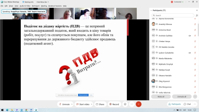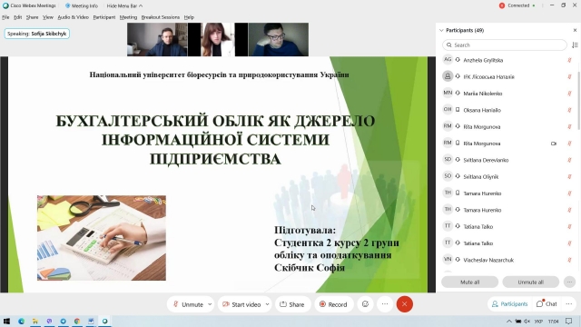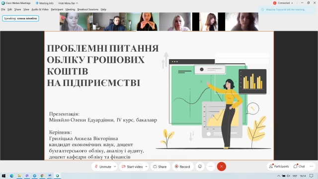Захід відбувся в онлайн-форматі з використанням сервісу СіsсоWebex з метою наукового підвищення якості наукових досліджень студентів, глибокого вивчення сучасних проблем обліку, оподаткування, контролю та аналізу й визначення пріоритетних аспектів подальшого розвитку науки.