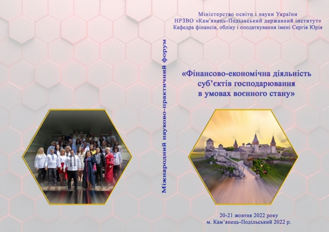 ВНЗ набувають авторитету за рахунок успішно проведених наукових заходів. 20-21 жовтня 2022р відбувся Всеукраїнський науково-практичний форум з міжнародною участю "Фінансово-економічна діяльність суб`єктів господарювання в умовах воєнного стану", який об`єднав понад 90 науковців з України та Європейського Союзу. Організатори наукового форуму - кафедра фінансів, обліку та оподаткування імені С. Юрія НРЗВО"Кам'янець-Подільський державний інститут" доклали максимум зусиль, щоб об`єднати думки науковців, практиків та здобувачів у контексті обговорення питань реалій української економіки в умовах війни.