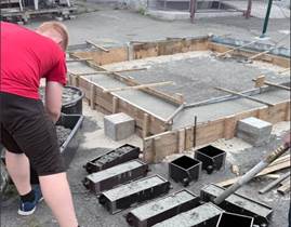 Здійснено бетонування фундаменту з використанням бетону класу С16/20. Роботи проводились за допомогою бетонозмішувача КамАЗ-6520, з подальшим ущільненням суміші глибинним вібратором;