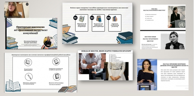Асистент кафедри філософії та міжнародної комунікації Вікторія Шеховцова-Бурянова звернула увагу на важливості уміння спілкуватися з абітурієнтом. Ораторське мистецтво - це ефективний інструмент комунікації. Вона провела майстер- клас для викладачів факультету аби вони покращили своє мистецтво промовисто аргументувати й доносити авдиторії важливість інформації.