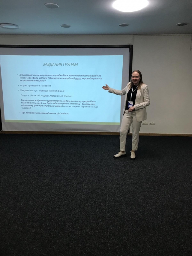 Для учасників семінару Ірина Сопівник провела Майстер-клас на тему «Методика підготовки програм підвищення кваліфікації працівників, які забезпечують соціальну роботу/надання соціальних послуг у територіальних громадах». Інна Осадченко подбала про ментальне здоров’я учасників і провела тренінг «Ефективні техніки попередження емоційного вигорання у процесі організації навчально- методичної роботи».