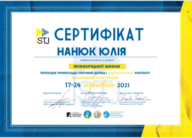 Травень видався цікавим для кафедри теорії та історії держави і права тим, що Центр міжнародного гуманітарного права і перехідного правосуддя запропонував усім бажаючим взяти участь у роботі І Міжнародної школи "Перехідне правосуддя: світовий досвід та українській контекст», яка пройшла з 17 до 24 травня 2021 року.
