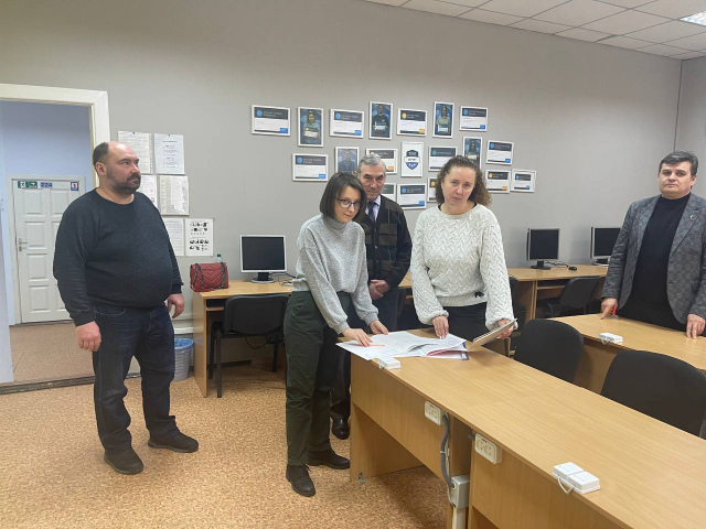 Комісія у супроводі завідувача кафедри інформаційних систем і технологій Михайла Швиденка, завідувача кафедри комп’ютерних систем, мереж і кібербезпеки Дмитра Касаткіна, завідувачів та співробітників навчальних лабораторій Сергія Саяпіна та Таїсії Саяпіної здійснили огляд лабораторій та представили комісії позиції, що підтверджують повну готовність лабораторій до використання в освітньому процесі.