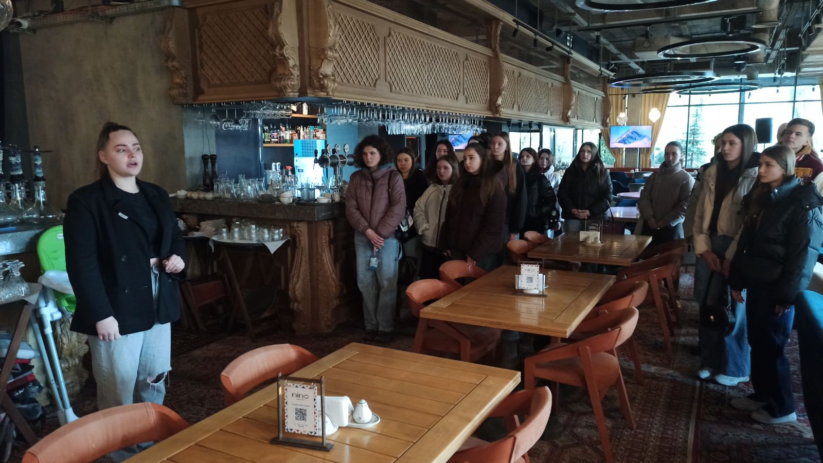Персонал ресторану «NINO» провів для студентів екскурсію виробничими приміщеннями, розповів про секрети грузинської кухні та поділився досвідом ефективного управління закладом. Практичне занурення в атмосферу справжнього ресторану надихнуло майбутніх фахівців та зміцнило їхнє прагнення до обраної професії.