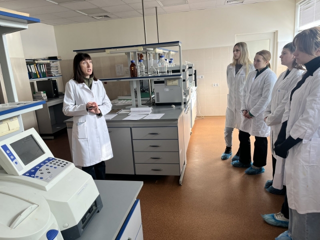 Окрім цього, завідувач наукового-відділу моніторингу безпеки АПК, кандидат ветеринарних наук Мідик Світлана Володимирівна та асистент кафедри екології агросфери та екологічного контролю Нікітченко Богдан Ярославович провели ознайомчу екскурсію по відділах УЛЯБП АПК та розповіли про перелік показників, які можна визначати на базі лабораторії, міжнародну сертифікацію і стандартизацію. Також студенти дізналися про методи біоіндикації за використання бджіл, адже вони мають здатність накопичувати в своєму організмі різні забруднювачі, такі як пестициди, важкі метали та радіонукліди. Ці речовини можуть потрапляти в тіло бджіл з пилком, нектаром, водою, або через повітря. Бджоли є індикатором стану навколишнього середовища, чутливо реагують на забруднення, зміну клімату, втрату біорізноманіття та інші негативні чинники.