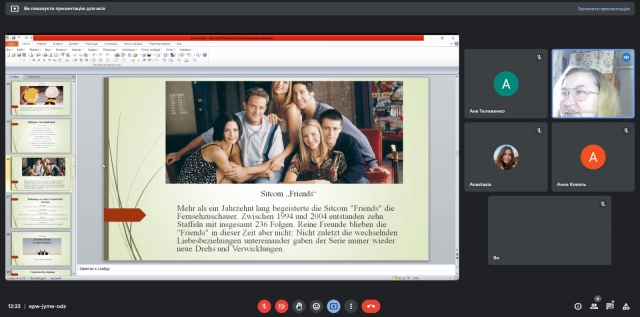 14 лютого 2023 року відбулося відкрите заняття доцента кафедри іноземної філології і перекладу Олени Пилипенко з дисципліни «Практичний курс основної іноземної мови (німецької) і переклад» на тему „Was macht eine echte Freundschaft aus?” для студентів 3 курсу спеціальності 035.04 «Філологія. Германські мови та літератури (переклад включно)». У ході заняття викладачеві повною мірою вдалося реалізувати поставлені цілі – збагатити тематичні знання студентів з іноземної мови, допомогти пізнавати соціокультурний аспект життя, розвивати культуру спілкування тощо (детальніше тут).