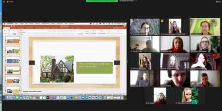 22 лютого 2023 року старший викладач кафедри романо-германських мов і перекладу Юлія Чернова провела відкрите заняття з дисципліни «Практичний курс основної іноземної мови (англійської) і переклад» на тему „Housing and Rooms” для студентів 1 курсу спеціальності 035 «Філологія». Під час заняття студенти опановували тематичну лексику, ділилися особистою позицією стосовно життя в місті та сільській місцевості, вдосконалювали перекладацькі навички (детальніше тут)