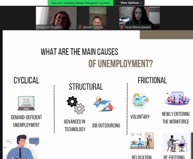 25 лютого 2023 року на відкрите заняття з дисципліни «Іноземна мова» запросила колег та для здобувачів вищої освіти першого (бакалаврського) рівня 3 року навчання денної форми спеціальності 051 «Економіка» старший викладач кафедри англійської філології Ірина Розгон. Заняття на тему „Social Issues” охоплювало різні проблеми: економічні, політичні, соціальні тощо та пройшло в невимушеній атмосфері активної взаємодії викладача зі студентами, які представили власні міні-доповіді про соціальні проблеми та їхній зв'язок з економікою у вигляді презентацій.