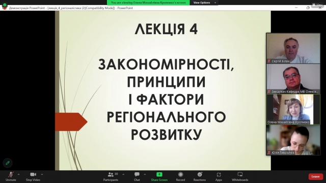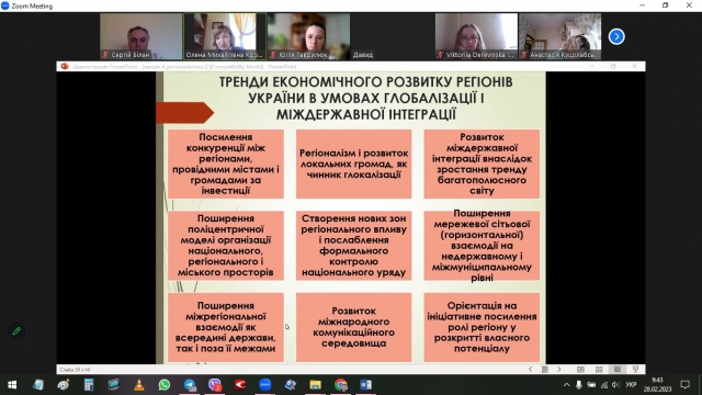 Надзвичайно плідним на відкриті лекції на гуманітарно-педагогічному факультеті виявився день 28 лютого 2023 року, адже відразу дев’ять викладачів провели свої відкриті зустрічі зі студентською аудиторією університету. Так, доцент кафедри міжнародних відносин та суспільних наук Олени Кропивко провела відкриту лекцію з дисципліни «Регіоналістика та етнодемографічні процеси в регіонах світу» на тему «Закономірності, принципи і фактори регіонального розвитку» для студентів 3 курсу спеціальності 291 «Міжнародні відносини, суспільні комунікації та регіональні студії». Лектор разом зі студентами розглядали рівень економічного і соціального розвитку регіонів, аналізували відмінності елементів територіальної структури господарства, фактори формування регіонів та сучасні тренди економічного розвитку регіонів України в умовах глобалізації і міждержавної інтеграції.