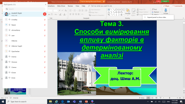 01.04.2020 р. доцент Анатолій Шиш разом зі студентами економічного факультету 3 року навчання спеціальності «Облік оподаткування» успішно апробували проведення лекційного та практичного занять з дисципліни «Аналіз господарської діяльності» на тему «Способи вимірювання впливу факторів в детермінованому аналізі» за допомогою сучасного засобу комунікації Webex Cisco, який є інструментом очного дистанційного спілкування багатьох відомих зарубіжних урядових та бізнес-структур.