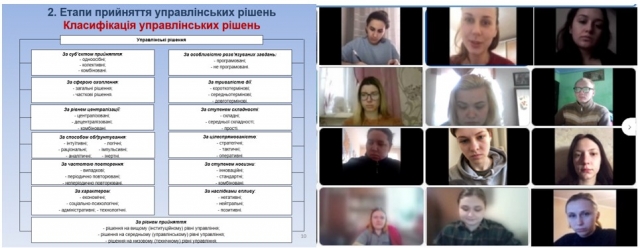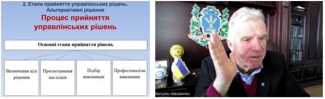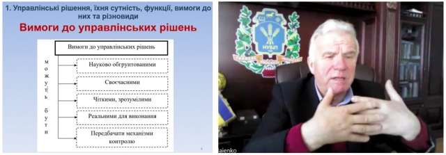 Лекція була наповнення духом оптимізму, мотивацією до боротьби за перемогу, до цілеспрямованої діяльності у важкий воєнний час, і, особливо, до власної самореалізації та навчання. Тема заняття розкривала проблему прийняття управлінських рішень у закладі освіти і торкалася питань: сутності, завдань та функцій управлінських рішень, їх різновидів та вимог до них; реалізації етапів прийняття управлінських рішень; характеристики альтернативних рішень; застосуванню індивідуального та колегіального підходів до прийняття управлінських рішень у закладах освіти; організації контролю за виконанням управлінських рішень.