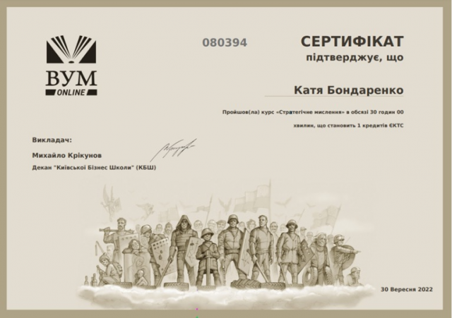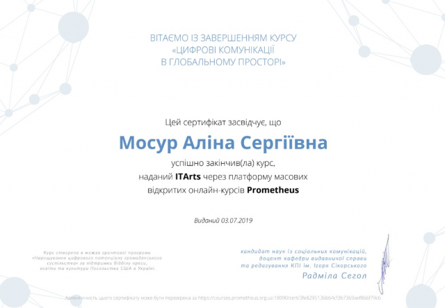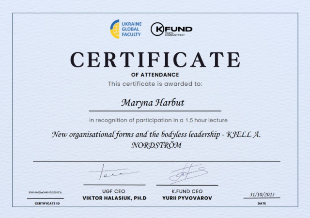 Вказана платформа налічує більше 19 тисяч учасників, більше 110 лекцій, більше 55 університетів партнерів. Безсумнівно, підтримка освіти має вирішальне значення для відновлення України, розвитку людського капіталу та стимулювання економіки. Після відвідування лекції магістранти мали змогу згенерувати сертифікат про участь.