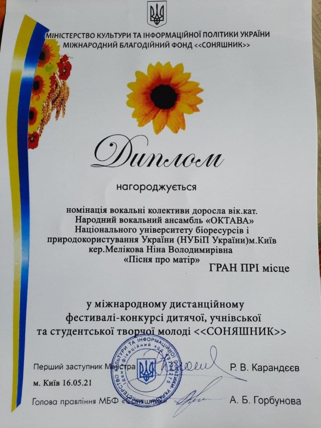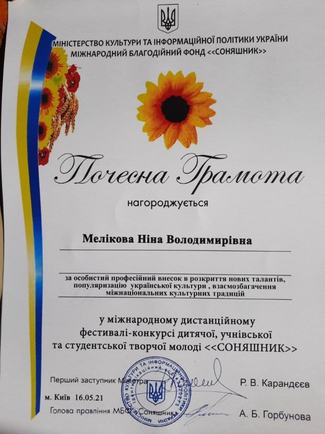 Підтвердженням цьому став Міжнародний дистанційний фестиваль-конкурс дитячої, учнівської та студентської творчої молоді "СОНЯШНИК", організатори якого (Міністерство культури України, соціальна служба для сім'ї, дітей та молоді м. Києва та благодійний фонд «Соняшник») переконані: