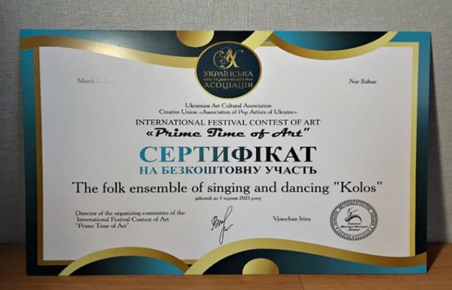 Так, в Амстердамі під патронатом Всесвітньої унії культури відбувся Міжнародний фестиваль мистецтв «Netherlandish Golden Tulip 2021», у якому взяла участь хорова група ансамблю. Ось якого листа отримав «Колос» від організаторів: