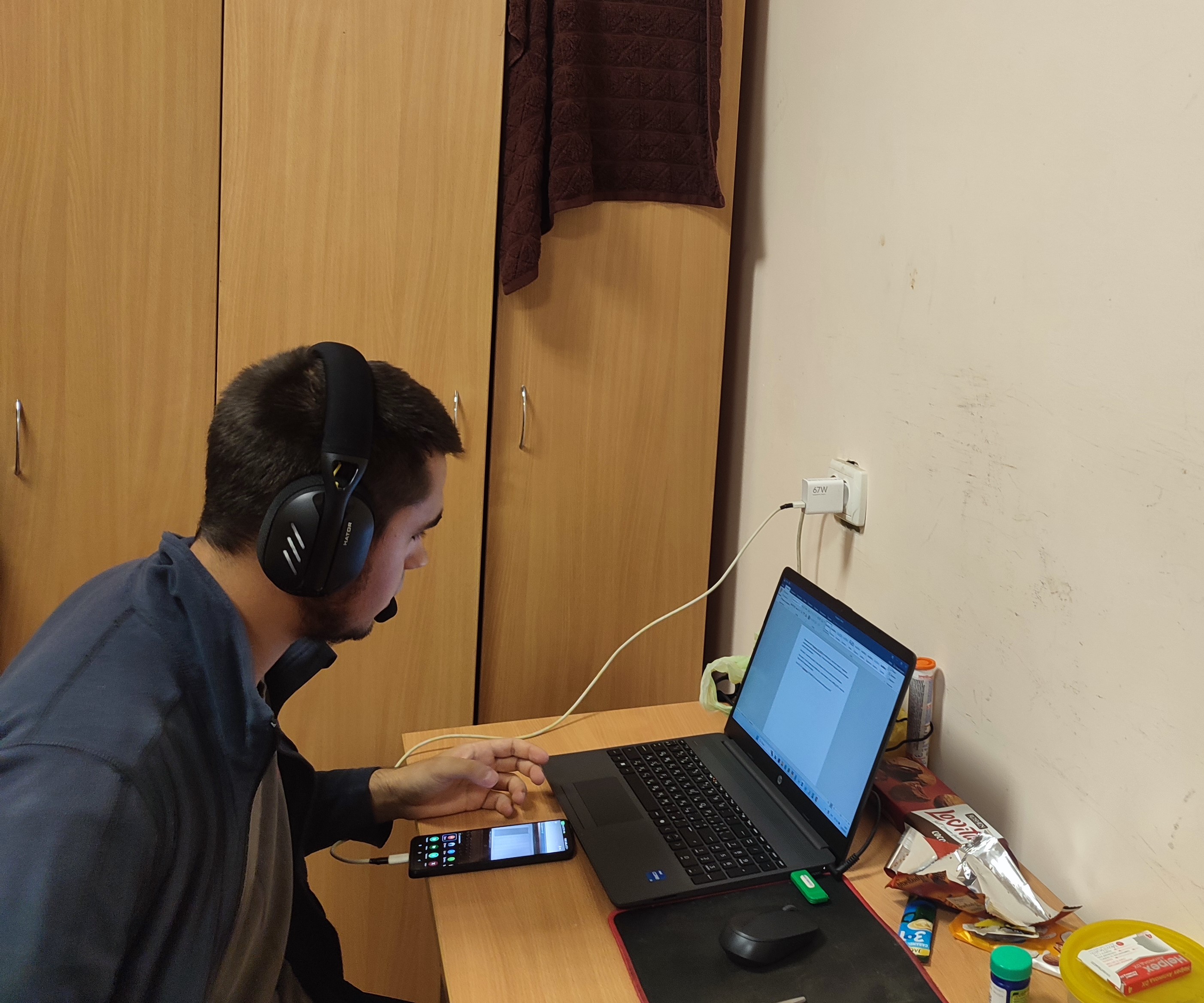 Більшість моїх магістрів живуть вдома або знімають квартири, у них зараз дослідницька практика. Четвертий курс в гуртожитку проживають у чотирьох кімнатах на п’ятому поверсі. Зі своїми студентами бачусь і спілкуюсь часто, так як викладаю у них дисципліни. Основною метою відвідування було оглянути умови проживання та санітарний стан місць загального користування студентів обговорити підготовку до написання бакалаврських робіт.