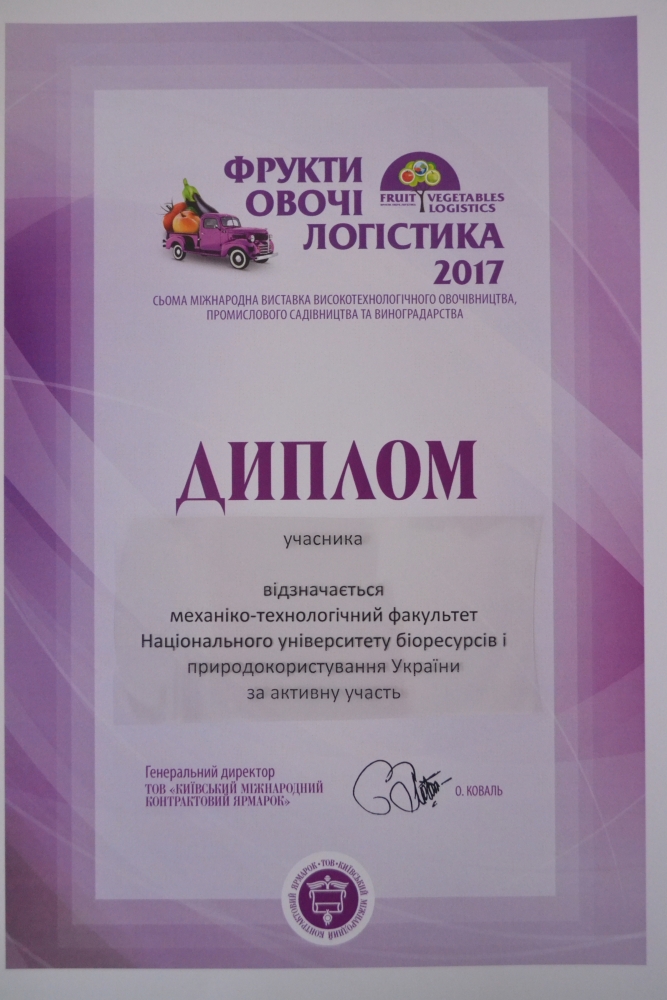 НПП механіко-технологічного факультету - учасники виставки «ФРУКТИ. ОВОЧІ. ЛОГІСТИКА»