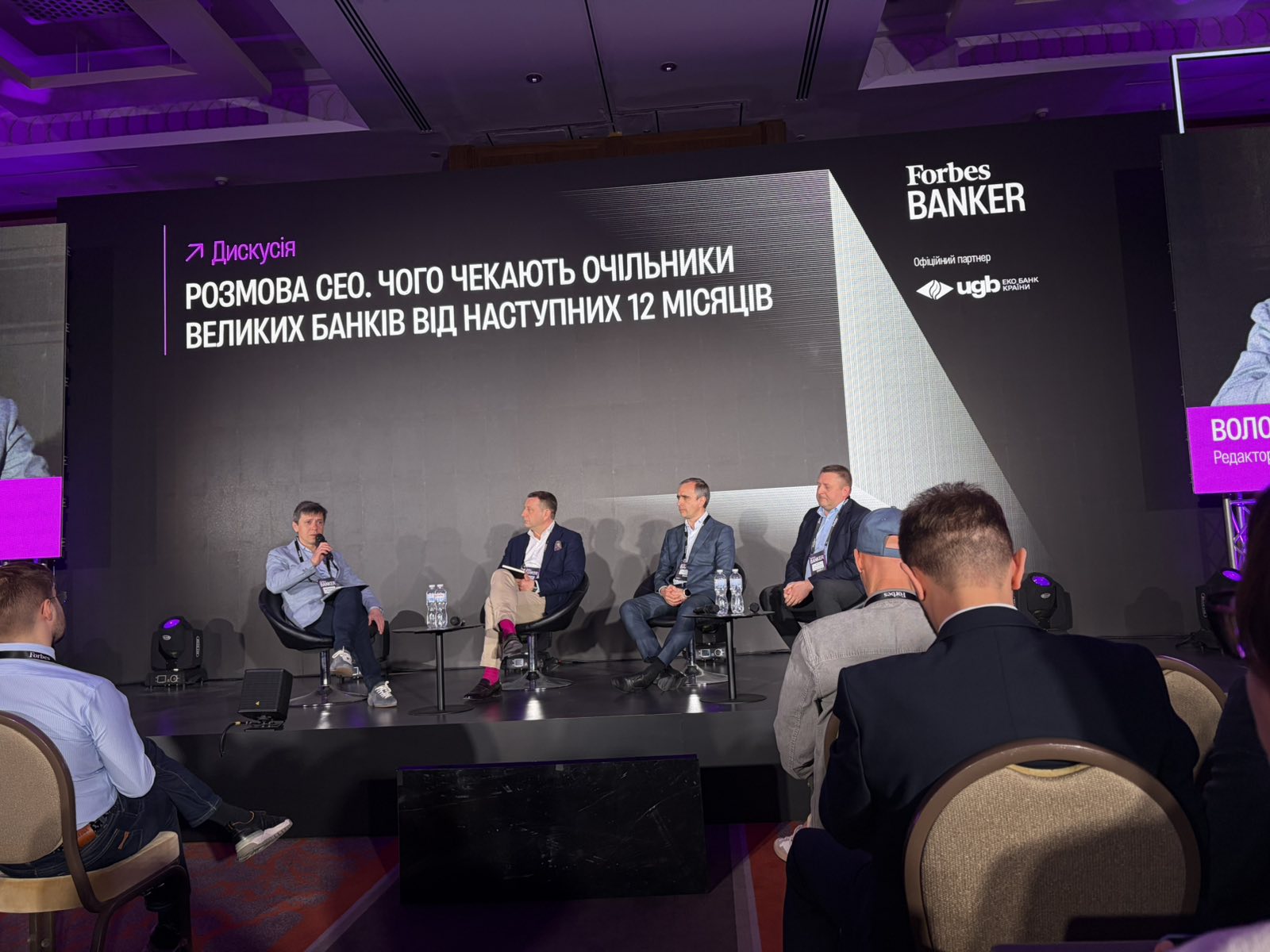 Важливе місце у програмі зайняла панельна дискусія «Розмова CEO. Чого чекають очільники великих банків від наступних 12 місяців», модератором якої виступив Володимир ФЕДОРІН (редактор-засновник Forbes Ukraine). Учасники — Сергій ЧЕРНЕНКО (голова правління ПУМБ), Віктор ПОНОМАРЕНКО (голова правління Укрексімбанку) та Олександр ПОВШЕДНИЙ (голова правління ПроКредит Банку) — окреслили ключові виклики: уповільнення економіки, зростання конкуренції, дефіцит якісних клієнтів, обмеженість ресурсів для кредитування, а також вплив фінтеху і штучного інтелекту.