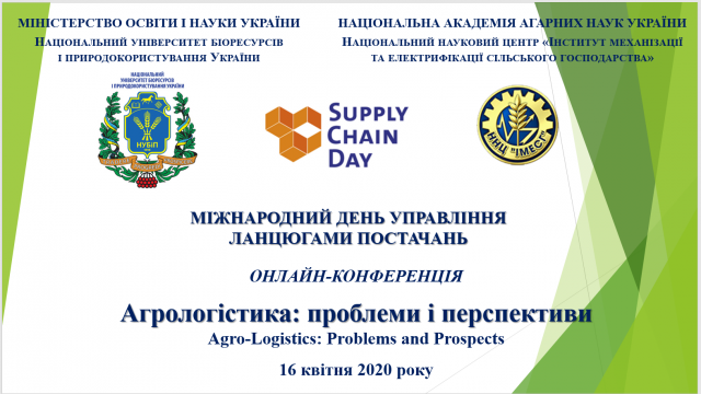 Професіоналами в логістиці стають завдяки невпинній роботі над собою, удосконалюючи свої навички. З таким твердженням згідні й науково-педагогічні працівники кафедри транспортних технологій та засобів АПК НУБіП України, які спільно із вченими ННЦ «ІМЕСГ» виступили співорганізаторами «Supply Chain Day 2020» та ініціювали проведення відеоконференції «Agro-Logistics: Problems and Prospects», яка відбулася 16 квітня у форматі відеоконференції Webex та була включена до основної програми заходів Міжнародного дня управління ланцюгами постачань.
