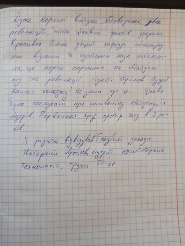 1. Круглий стіл з нагоди Дня Гідності та Свободи, проведений кафедрою міжнародних відносин і суспільних наук. Початок о 8.30.