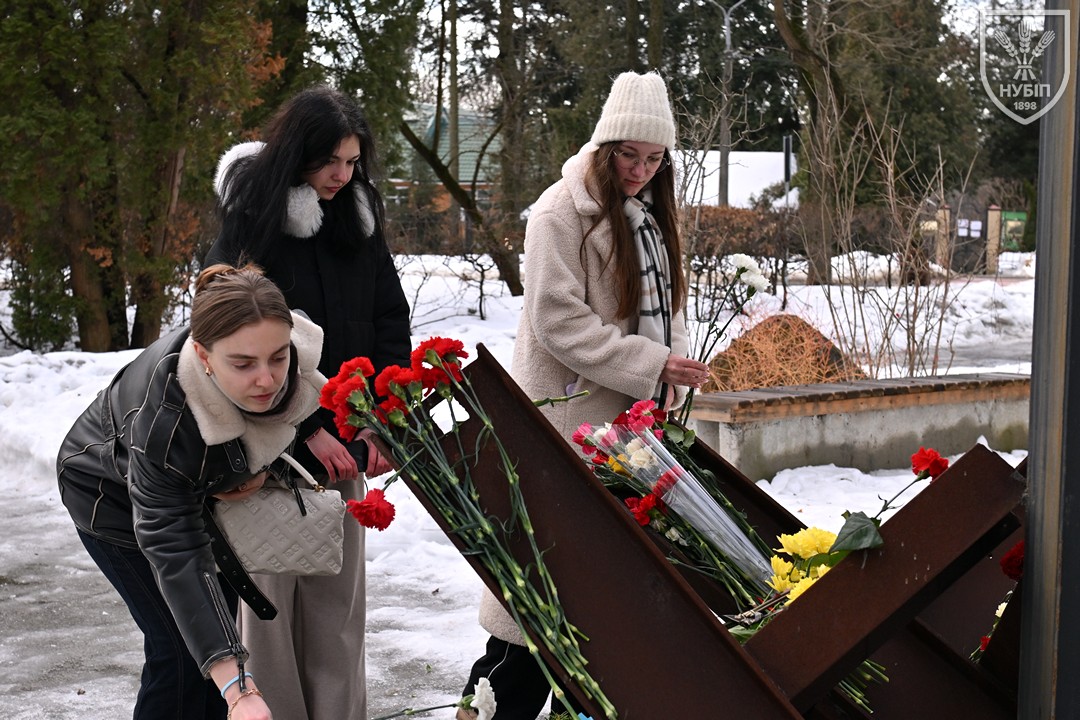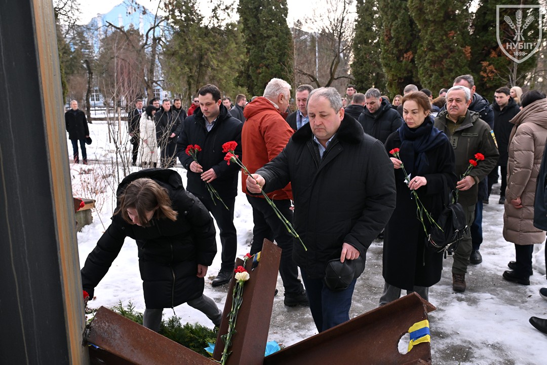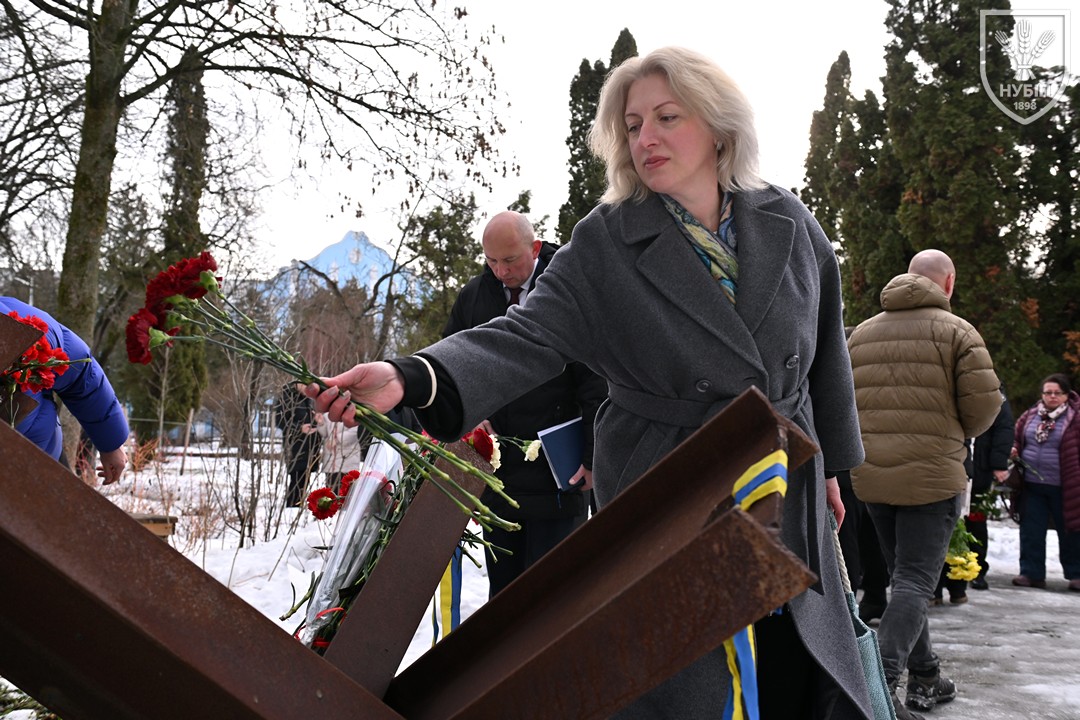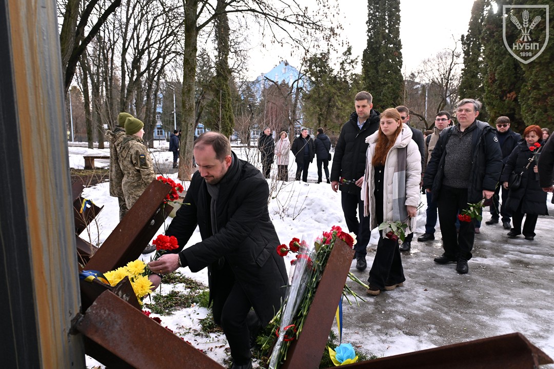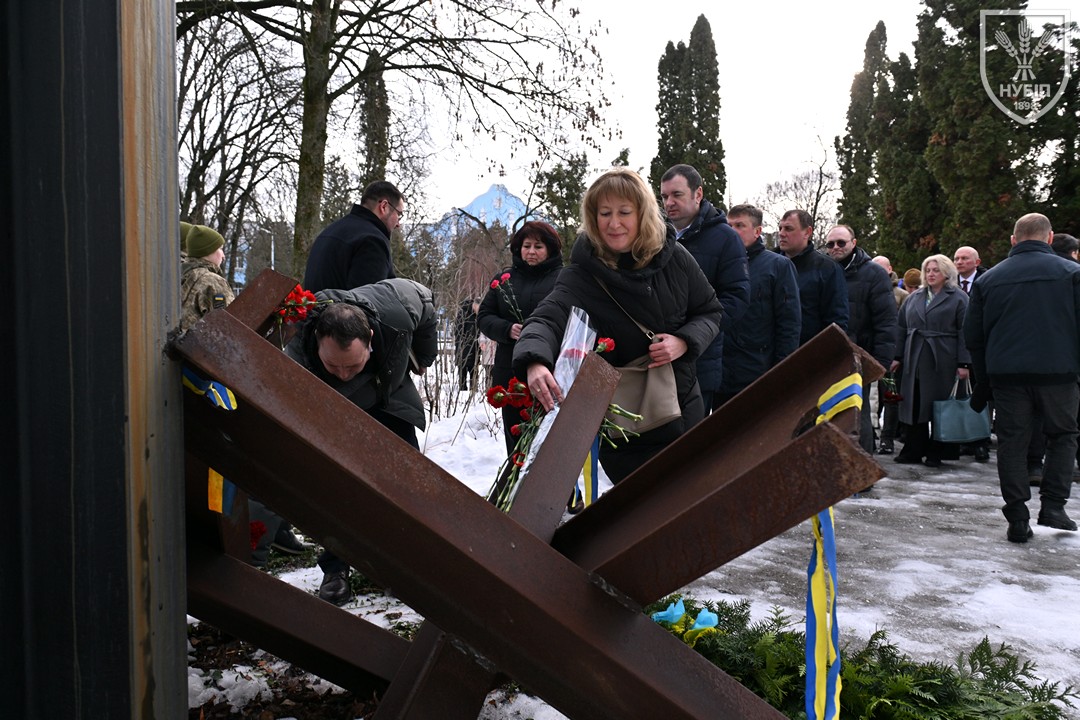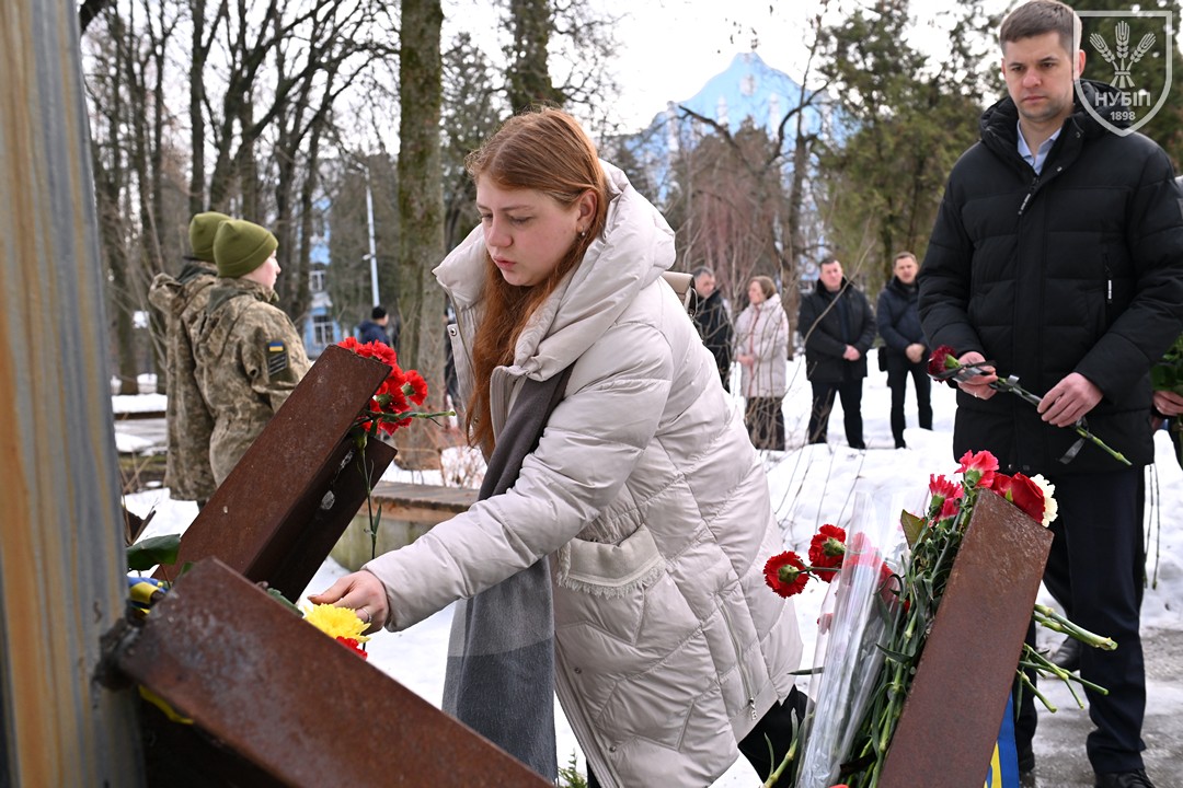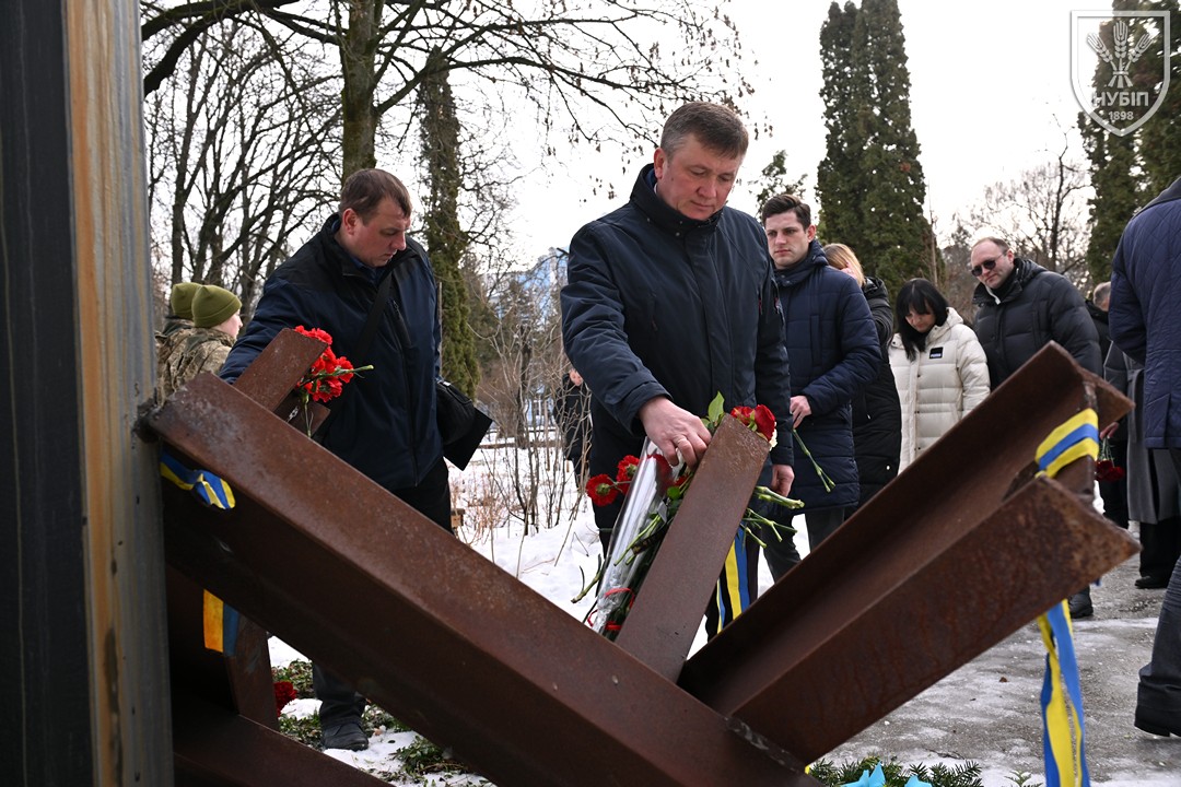 Сьогодні — 24 лютого 2026 року, в Україні та світі вшановують героїчну боротьбу народу за свободу, незалежність і пам’ять тих українських героїв, хто поліг в цій боротьбі. І колектив Національного університету біоресурсів і природокористування України знову, вже вкотре, долучився до цієї національно-патріотичної акції: до пам’ятника в університетському сквері пам’яті випускників, студентів, викладачів, співробітників університету, воїнів-героїв, які загинули за свободу і незалежність України в боротьбі проти російських загарбників, лягли пам’ятна гірлянда та живі квіти.