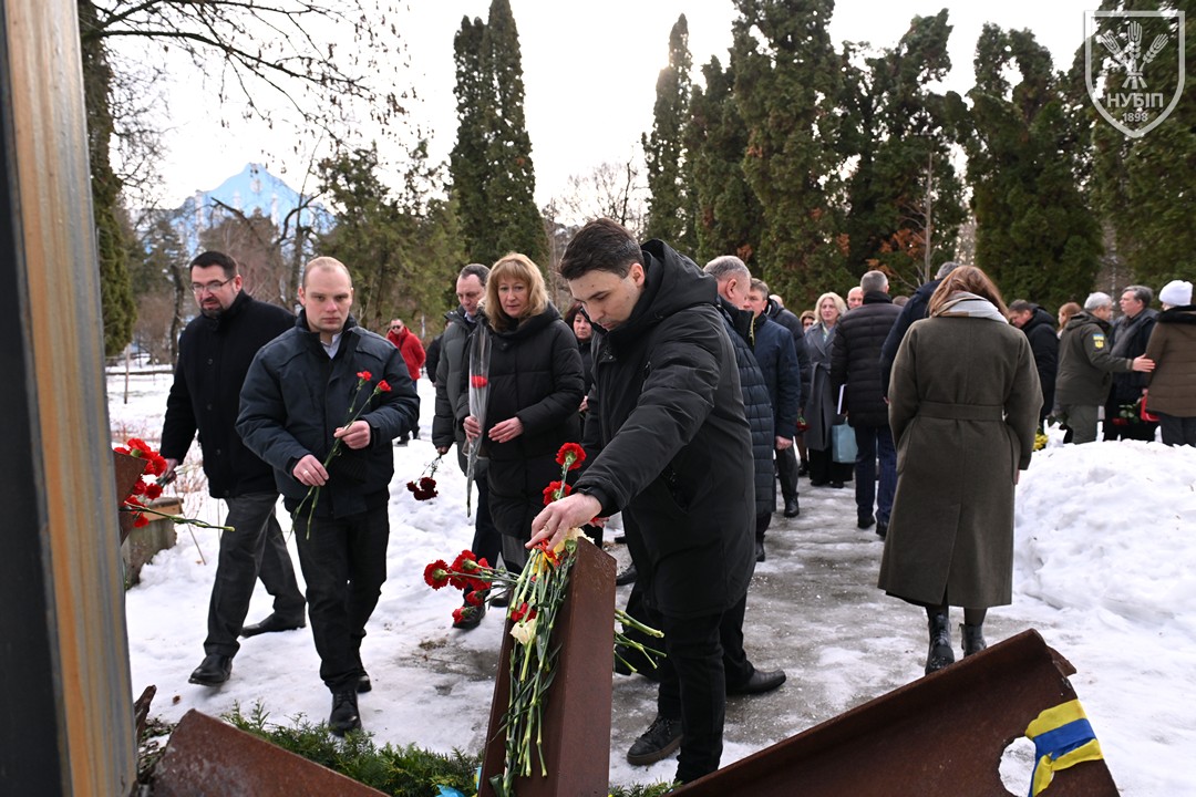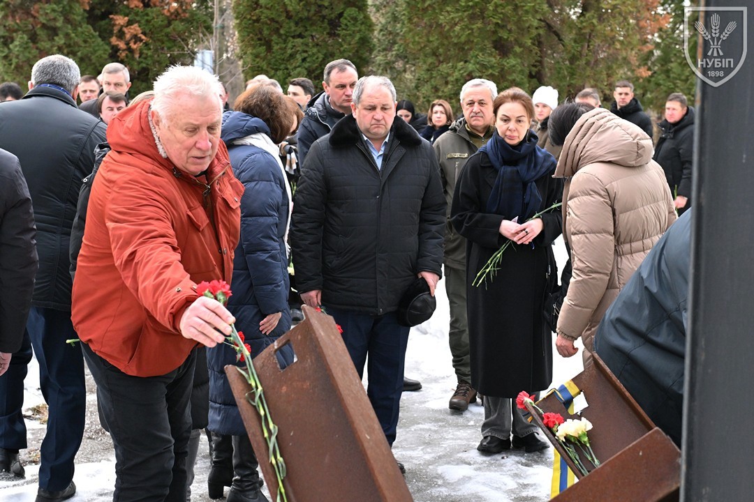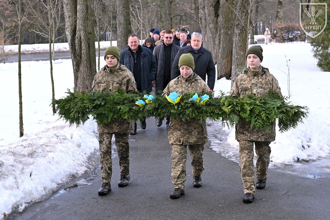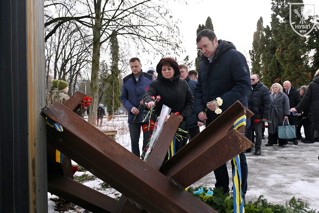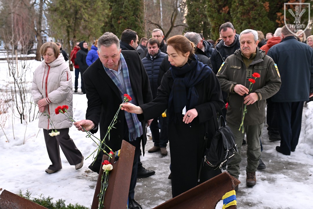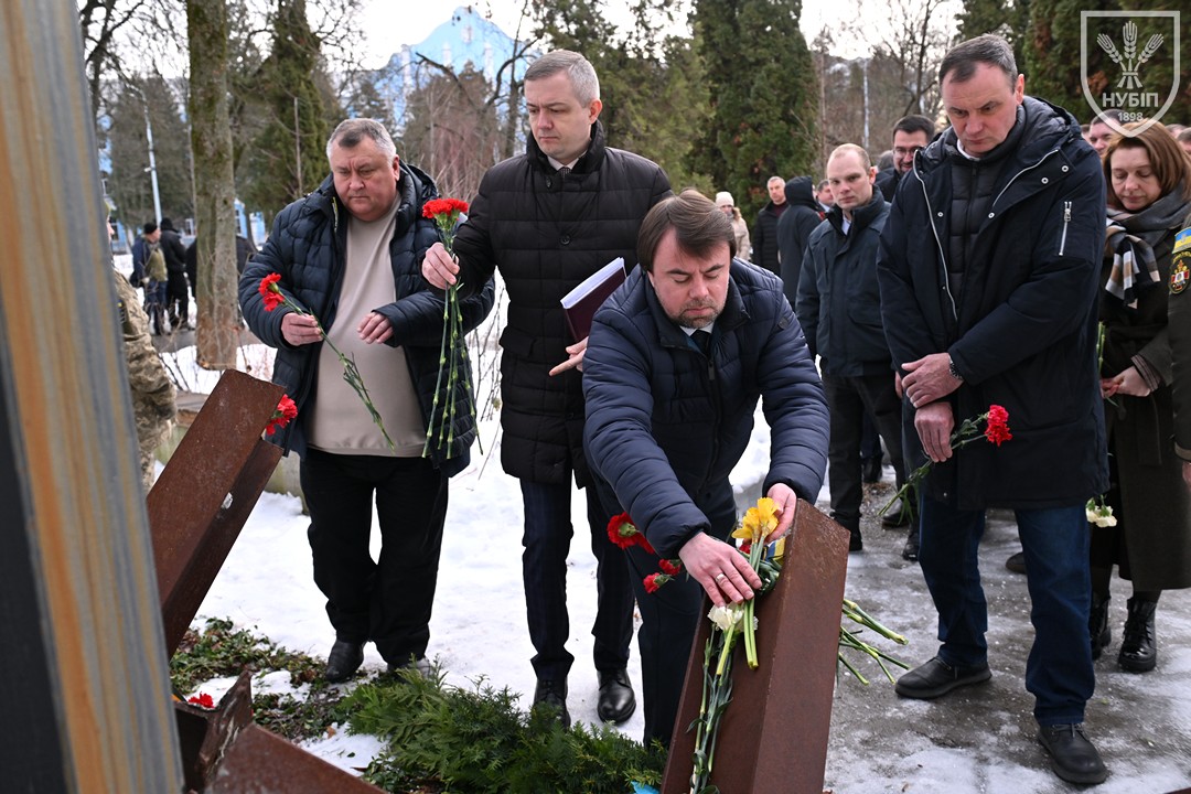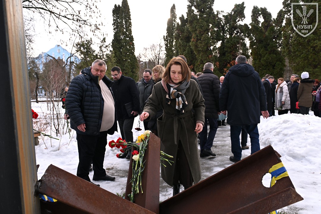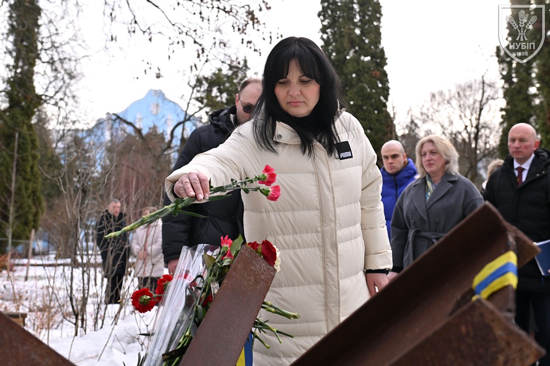 Сьогодні — 24 лютого 2026 року, в Україні та світі вшановують героїчну боротьбу народу за свободу, незалежність і пам’ять тих українських героїв, хто поліг в цій боротьбі. І колектив Національного університету біоресурсів і природокористування України знову, вже вкотре, долучився до цієї національно-патріотичної акції: до пам’ятника в університетському сквері пам’яті випускників, студентів, викладачів, співробітників університету, воїнів-героїв, які загинули за свободу і незалежність України в боротьбі проти російських загарбників, лягли пам’ятна гірлянда та живі квіти.
