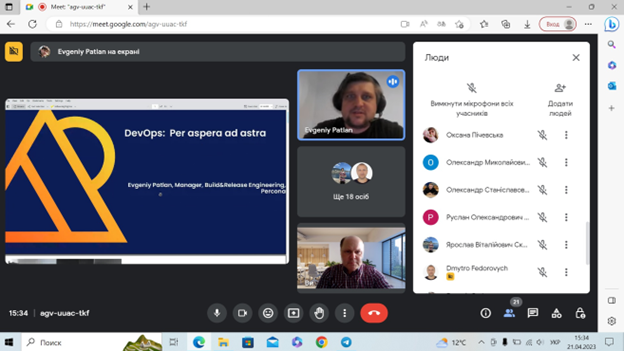 21 квітня 2023 року на кафедрі Комп’ютерних систем, мереж та кібербезпеки факультету інформаційних технологій НУБіП України відбулась зустріч з ІТ-фахівцем, Manager, build & release engineering в компанії Percona Євгенієм Патланем. Майже 40 студентів спеціальностей 123 «Комп’ютерна інженерія» та 125 «Кібербезпека», а також викладачі, взяли активну участь в обговоренні загальних планів щодо розвитку української ІТ-індустрії.