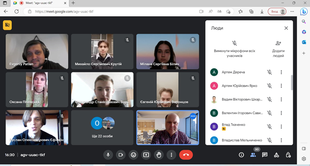Впродовж доповіді спікера виникали ряд запитань від здобувачів, на які вони отримували чіткі, лаконічні й професійні відповіді. До участі у обговоренні долучилися науково-педагогічні працівники кафедри КСМтаКІБ НУБіП України (д.пед.н., професор Мамченко С.М.; к.т.н., доц. Сагун А.В., к.т.н., доц. Мисюра М.Д.; к.ф.-м.н., доц. Нікітенко Є.В.; к.т.н., доц. Гусєв Б.С.; к.т.н., доц. Шкарупило В.В.).