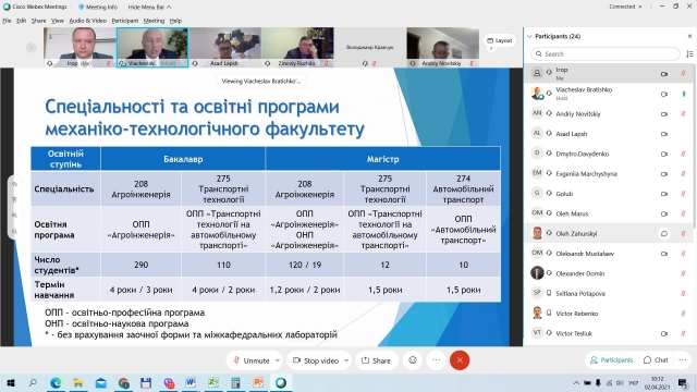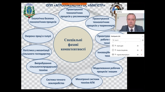 Заступник декана механіко-технологічного факультету, Ігор Сівак, висвітлив наповнення освітніх програм спеціальностей «Агроінженерія», «Транспортні технології (на автомобільному транспорті)» та «Автомобільний транспорт», в розрізі якісного забезпечення дисциплінами компетенцій здобувачів, відповідно до стандартів вищої освіти. Доповідач показав основні методи навчання студентів, які використовуються в межах освітніх програм, на механіко-технологічному факультеті, для підготовки свідомого і вмотивованого інженера. Серед таких методів, крім лекційних, практичних і лабораторних занять, широко використовуються семінари у провідних компаніях, участь у міжнародних виставках техніки і технологій, участь у міжнародних днях поля, виїзні заняття на виробництві, участь в діяльності наукових гуртків, навчальні і виробничі практики в Україні та за кордоном.