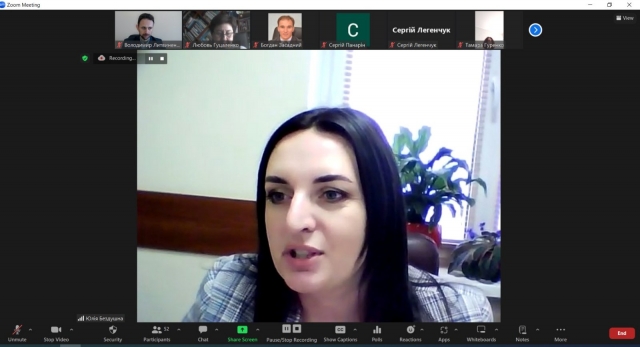Юлія Бездушна –директорка Товариства з обмеженою відповідальністю «Всеукраїнський інститут права і оцінки» акцентувала увагу на питаннях оцінки вартості активів та підприємства як функціоналу бухгалтера. Юлія Сергіївна висловила вдячність університету за якісну підготовку фахівців з обліку, оподаткування, аналізу та аудиту, адже випускники спеціальності «Облік і оподаткування» є співробітниками очолюваного нею товариства.