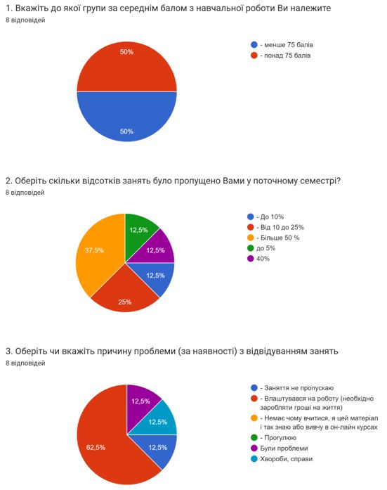 Більш детально з результатами анкетування можна ознайомитись для першого курсу, для другого курсу, для третього курсу.