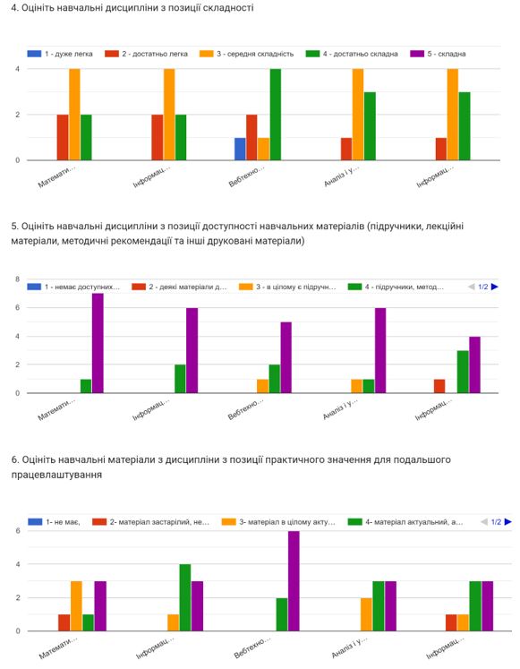 За результатами обговорення освітньо-професійних програм із здобувачами вищої освіти було отримано наступні результати (1-3 курс), зокрема 3 курс