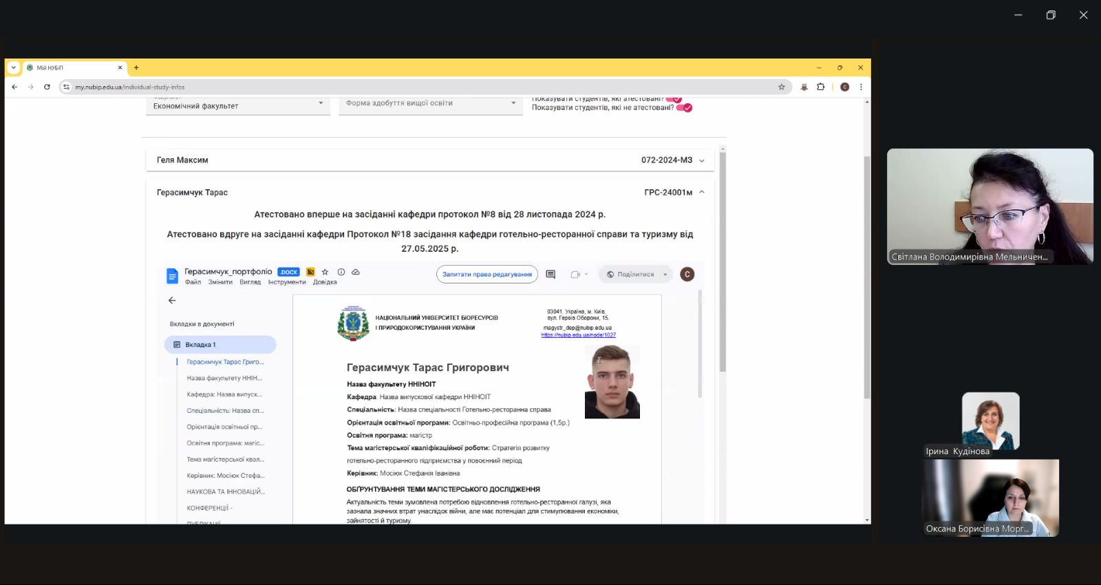 15 жовтня 2025 року гаранти освітніх програм «Готельно-ресторанна справа» та «Міжнародний туризм» та члени проєктної групи зустрілися зі здобувачами освітнього ступеня «магістр» 2 року навчання в онлайн режимі.