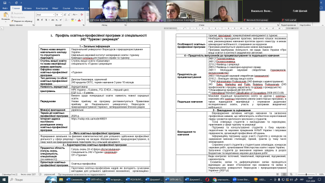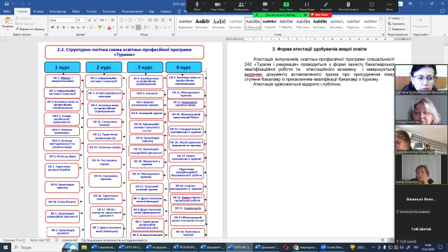 Учасники активно і плідно попрацювали, обговорили всі зміни та уточнення, а зібрана інформація (відгуки, пропозиції від учасників) слугували основою для удосконалення змісту та якості підготовки здобувачів вищої освіти за освітньо-професійною програмою «Туризм» першого (бакалаврського) рівня вищої освіти.