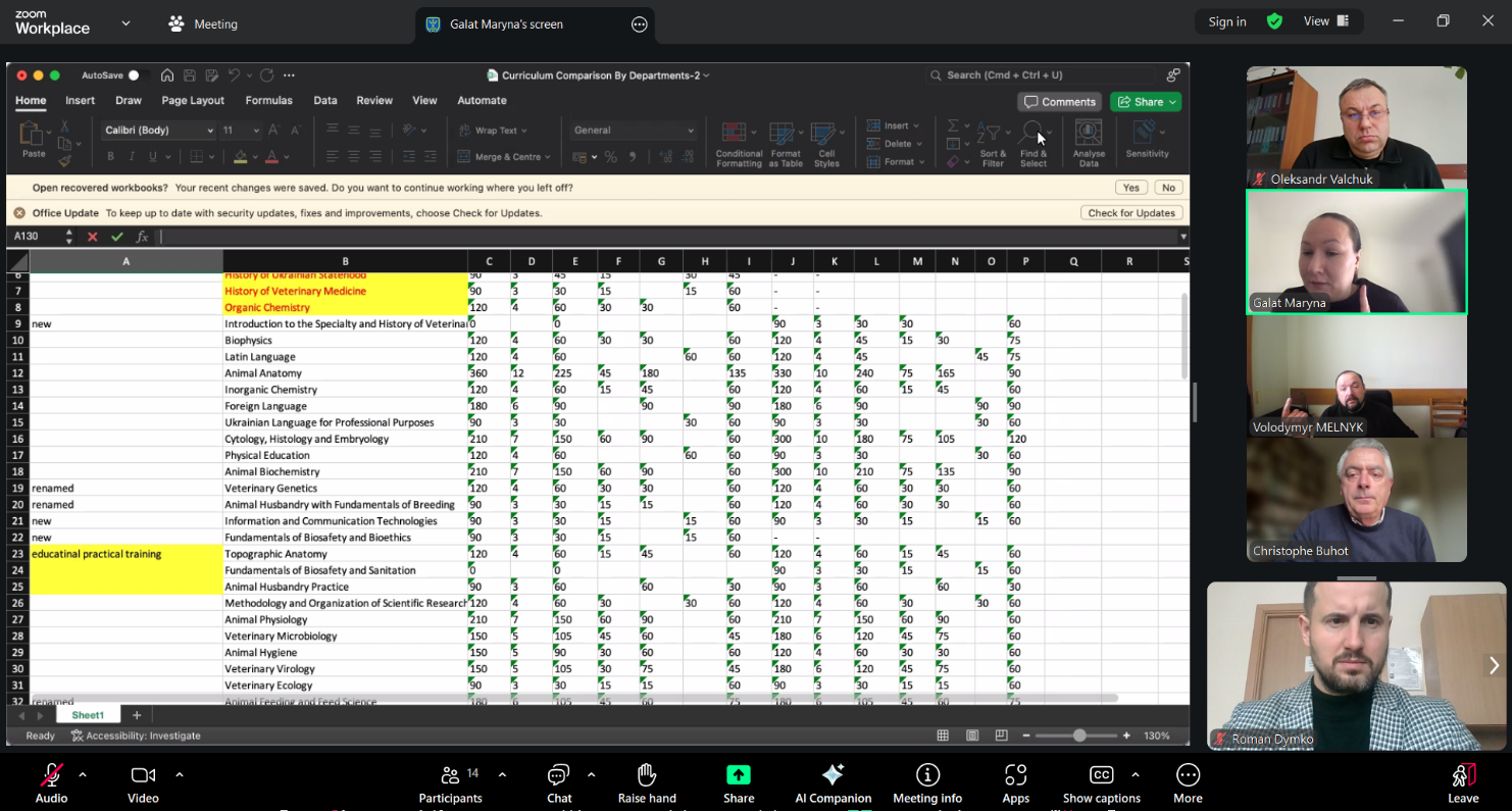 13 лютого 2026 року на факультеті ветеринарної медицини відбулося онлайн засідання організаційного комітету з підготовки до акредитації європейською асоціацією закладів вищої ветеринарної освіти (EAEVE) за участю експерта Крістіана БУФО. Захід був присвячений детальному розгляду оновленого навчального плану підготовки здобувачів вищої освіти ОС «Магістр» за освітньою програмою «Ветеринарна медицина» спеціальності Н6 «Ветеринарна медицина».