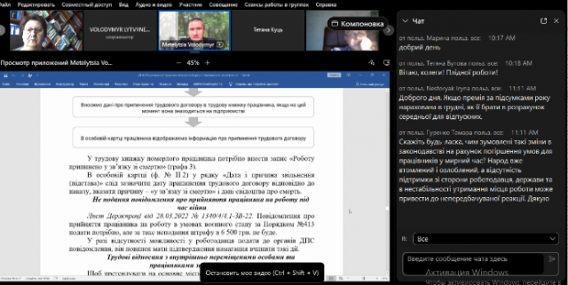 Зі словами вдячності до організаторів заходу від слухачів звернулись д.е.н., професори Марина Дубініна та Сергій Бардаш, які наголосили на важливості отриманої інформації, яка спонукає, як науково-педагогічних працівників так і практикуючих фахівців, до швидкої адаптації та змін в умовах воєнного стану.
