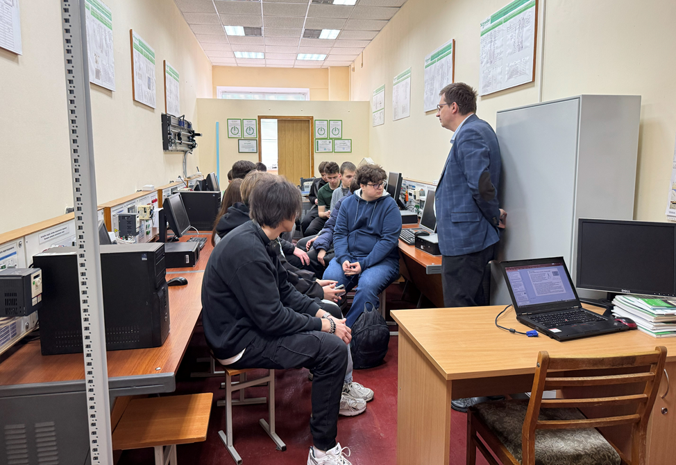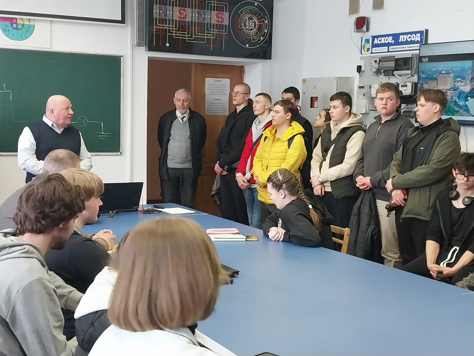 Ознайомлення з інститутом, його матеріально-технічною базою та навчальними лабораторіями розпочалося з презентації освітньої програми «Електроенергетика, електротехніка та електромеханіка» (спеціальність G3 «Електрична інженерія»). Гостям було представлено навчально-наукові лабораторії кафедри електротехніки, електромеханіки та електротехнологій, зокрема «Вимірювання, випробовування та діагностування енергообладнання», «Мехатроніки та моделювання електротехнологічних процесів і систем», «Електричного приводу», а також «Освітлення та опромінення». Презентацію провели завідувач кафедри Олександр ОКУШКО, гарант освітньої програми Олександр СИНЯВСЬКИЙ, доцент Віталій НАЛИВАЙКО та асистент Михайло СПОДОБА, які ознайомили учасників із особливостями підготовки майбутніх електроінженерів і можливостями практичного навчання.