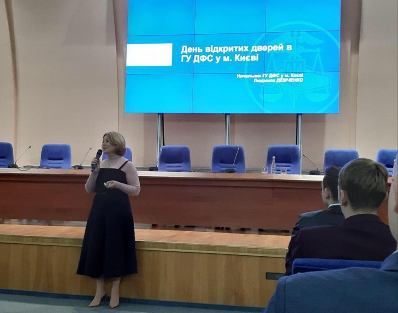 У стінах ДФС у м. Києві студенти провідних вузів столиці досліджували перспективи та можливості обрати відомство у якості старту кар’єри по завершенню ВУЗу. Учасниками дня відкритих дверей в Головному управлінні ДФС у м. Києві стали більше 300 студентів та представників навчальних закладів. Магістри спеціальності «Фінанси, банківська справа та страхування» разом з викладачами кафедри фінансів також ознайомилися з перспективами працевлаштування в податкові органи. З вітальним словом до студентів звернулася Людмила Демченко начальник столичної ДФС, яка ознайомила студентів зі структурою та функціями ГУ ДФС у м. Києві, розповіла про цінності, здобутки та переваги роботи у податковій міста. В своєму виступі, вона відмітила, що податкова гідно виконує покладені на неї функції, невпинно змінюється рухаючись до професійного розвитку та цифровізації системи оподаткування. Для молодих фахівців – це можливість отримати колосальний досвід роботи та зробити інвестиції у власні знання.